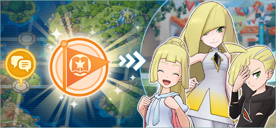 - En bord de plage, vous retrouvez Lilie qui vient de terminer un combat aux côtés de Percila et Erika. Celles-ci la remercient d'avoir fait partie de leur équipe le temps d'un match. Parsley et Gladio arrivent et la félicitent pour avoir particulièrement bien réussi son combat. Elle sait qu'ayant commencé sa carrière de Dresseuse en retard par rapport à son frère ou Tili, il lui reste encore beaucoup de choses à apprendre, mais elle est bien décidée à devenir encore plus forte. Erika et Percila, connues pour s'endormir un peu partout, semblent épuisées s'endorment debout ! Gladio reste songeur face à la capacité de Lilie à évoluer si vite malgré sa personnalité réservée, mais il est fier de la voir en plein essor !