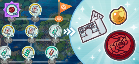 Ici, vous devez obtenir des Points de Mouvement pour vous déplacer sur la carte de l'évènement et acquérir des objets pour au final atteindre votre destination ! Notez que de nouveaux épisodes principaux apparaîtront également au fur et à mesure de votre progression et qu'il n'y a pas de limite de progression, vous pouvez donc continuer à récupérer les objets de la carte même après avoir terminé tous les épisodes.Les Épisodes principaux coûtent 5