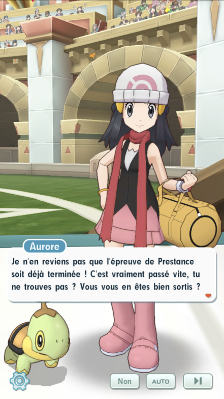 - L'épreuve de Danse terminée, Aurore félicite son Tortipouss. Puis, Marc, Kiméra et vous-même échangez vos avis sur vos prestations respectives. L'épreuve de Brillance est sur le point de commencer et Kiméra vous explique ce dont il s'agit : vous allez être évalué sur votre façon de combattre, alors combattez et brillez pour l'emporter !