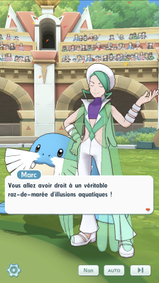 - L'épreuve Prestance s'est donc déroulée avec des dresseurs connus (Marc d'Hoenn et Kiméra de Sinnoh). Alors qu'elle se termine et qu'Aurore vous demande si ca c'est bien passé pour vous, vous avez à peine le temps de reprendre vos esprits que l'épreuve de Danse est annoncée (et vous apprenez que Kiméra sera encore de la partie) !