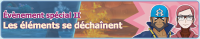 ![]() Les seigneurs des éléments15 missions Duos à l'affiche Bonus de connexion Promotion sur les Diamants Scénario et Combats Solo | Du 31 mai 2021 au 14 juin 2021 |