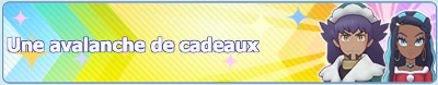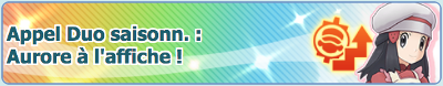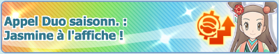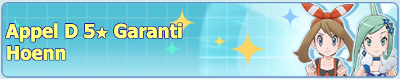 ![]() L'équipe de Hoenn10 missions Échanges d'objets Duos à l'affiche Bonus de connexion Promotion sur les Diamants Scénario et Combats Solo Combats Collectifs | Du 14 janvier 2021 au 1er février 2021 |