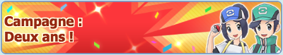 ![]() Journée Pokémon MastersAppel Duo spécial Échanges d'objets Bonus de Connexion Combats Solo et Coop | Du 25 décembre 2021 au 26 décembre 2021 |