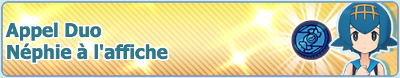 ![]() Évènement Duo spécial : Ondine et PsykokwakÉchanges d'objets Combats en Solo | Du 28 août 2021 au 16 octobre 2021 |