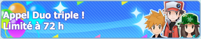 ![]() Journée Pokémon MastersAppel Duo spécial Échanges d'objets Bonus de Connexion Combats Solo et Coop | Du 25 novembre 2021 au 26 novembre 2021 |