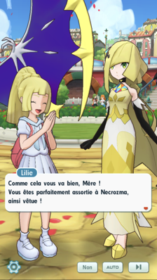 Avant que Necrozma ne disparaisse, Lilie a remarqué que sa Duo-Gemme s'était mise à briller, ce qui n'étonne pas sa mère. Elle comprend que même après avoir absorbé la lumière de Solgaleo, son parasite a un tel besoin d'énergie qu'il a été attiré lorsque la jeune fille a invoqué Lunala et que le pouvoir de leur lien a fait briller sa Duo-Gemme. Il va donc falloir répéter ce phénomène pour espérer le retour de Necrozma, mais auparavant, Tili et les autres se chargent d'évacuer la zone pour qu'il n'y ait pas de blessés si les choses tournent mal.