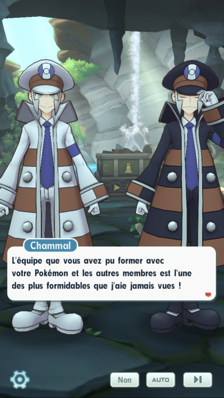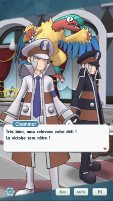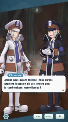 - Les deux frères vous félicitent pour votre victoire ! Ils se sont beaucoup amusés et sont sûrs que vous ne ferez que vous améliorer. Chamsin a pu voir à quel point vous aviez confiance en votre équipe. Quant à Chammal, il est sûr que vous pourrez devenir un bien meilleur Dresseur dans le futur ! Ils espèrent que vous reviendrez les défier plus tard et vous souhaitent bon vent !