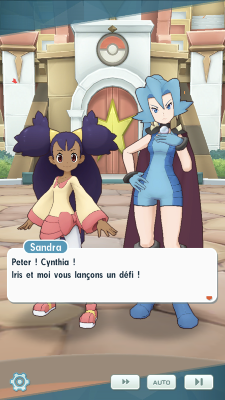 - Vos adversaires réalisent qu'ils n'avaient aucune chance ets veulent à leur tour savoir qui est le meilleur Dracologue. Pour trancher, ils proposent à Cynthia et Peter de s'opposer dans un stade un peu plus loin. Voilà donc les Maîtres prêts à combattre devant une foule de spectateurs ! Mais tout ne va pas se passer comme prévu, car Iris et Sandra s'invitent elles aussi à la fête et les défient. Peter vous demande à nouveau de le rejoindre avec Cynthia ! Quant à Écho, elle fera partie de l'équipe adverse pour ce combat !