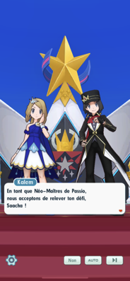 - À la grande Arène de Passio, vous devez faire face à Thyméo et Narcisse lors de combats qui sont seulement suggérés par le scénario. Vous en venez à bout et pouvez ainsi affronter Serena et Kalem. Comme ils l'ont appris en devenant les Néo-Maîtres, le plus important selon eux n'est pas de les vaincre, mais de partager des émotions avec eux au cours de votre combat.