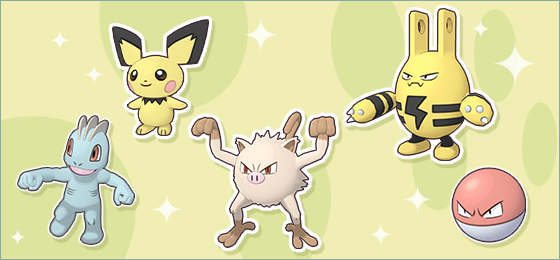 Durant cet évènement, la Professeure Bellis pouvait vous donner des Oeufs de Pokémon de type Électrik ou Combat (seulement si vous terminiez un des combats listés ci-dessous) !Pokémon à obtenir