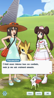 Pendant ce temps, au Centre Pokémon, une Vacancière fraîchement débarquée à Passio se prend en selfie et a la ferme intention de profiter un maximum des divertissements que l'île a à proposer !Récompenses (1ère fois)