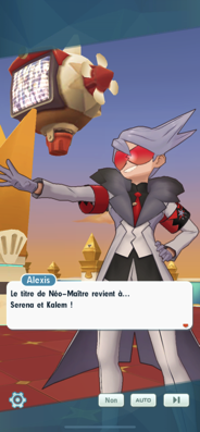 Kalem et Serena les rassurent, leurs assurant qu'avec de l'entraînement ils se renforceront, mais que surtout ils ne sont pas seuls sur l'île de Passio à vouloir devenir plus fort. C'est alors qu'Alexis arrive, félicitant le duo d'avoir remotivé ces dresseurs. Celui-ci annonce aussi qu'il prévoit un évènement parfait pour eux. Malgré tout, Kalem se questionne sur sa rivalité avec Serena...Récompenses (1ère fois)