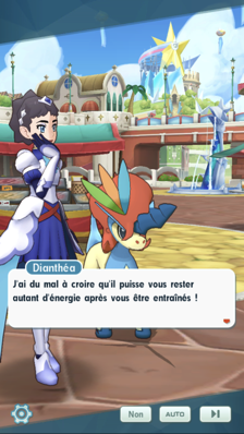 | 9 | Finissez une des zones suivantes 20 fois : • Combat : Dianthéa (Normal) • Combat : Dianthéa II (Difficile) • Combat difficile limité à une fois par jour ! (Super Expert) | ![]() Un entraînement musclé (x1) |