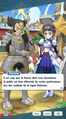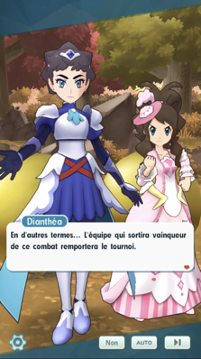 - Il est temps de présenter les Duos leaders des deux groupes : Guzma et Jasmine sont alliés à des Ultra-Chimères et font face à Dianthéa et Ludvina, qui sont forment quant à elles des Duos avec des Pokémon fabuleux ! Toutes et tous ont enfilé des costumes à l'ambiance médiévale pour cet évènement ! Une fois les présentations faites, chacun retourne de son côté pour terminer les préparatifs avant le début du tournoi.