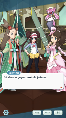 Le combat entre Jasmine et Ludvina fait rage, et c'est finalement la Championne de la région de Johto qui remporte le combat ! Malgré sa défaite, la dresseuse d'Unys ne regrette pas de l'avoir aidée à s'améliorer, elle est même ravie d'avoir participé à renforcer l'amitié entre Jasmine et Bamboiselle. Après cet affrontement, l'Ultra-Chimère est toute poussiéreuse et Jasmine, un peu maniaque, décide de la refaire briller.Récompenses (1ère fois)