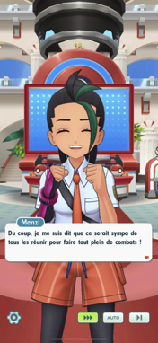 - Vous retrouvez Menzi au Centre Pokémon : elle souhaiterait que vous l'aidiez à réunir tous les dresseurs balèzes de Passio pour faire plein de combats contre eux !