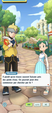 - Mortimer et vous croisez Christy qui s'inquiète car son Suicune est introuvable et aussitôt, le Champion de Rosalia lui propose que vous aidiez la jeune Dresseuse en cherchant tout d'abord près des points d'eau, les endroits où ce Pokémon légendaire aime se rendre. Vous commencez par jeter un oeil à la fontaine de Cordis, où vous tombez sur Blanche et Jasmine, qui n'ont malheureusement rien vu. À la plage, ce sont Sandra et Fredo que vous rencontrez, mais aucune trace de Suicune par là-bas selon eux. En montagne près d'une cascade, ce sont Hector et Albert que vous trouvez, et eux non plus n'ont pas vu la trace du Pokémon échappé. En tant qu'Ornithologue, Albert est impressionné par la beauté du plumage doré et rougeoyant du Ho-Oh de Mortimer. Les deux champions promettent de vous aider depuis les cieux et à l'aide des puissants yeux de leur Pokémon.
