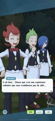 Un peu plus tard, le mets est prêt ! Après voir goûté le fameux "Trioragoût d'Akala", les champions sont à la fois surpris et heureux d'avoir pu participer à cette dégustation bien qu'ils aient un peu été bousculés par le côté relevé et la somnolence qui s'est un peu emparée d'eux !Récompenses (1ère fois)