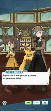 Enfin, le détective et son assistante se dirigent vers Artie et Célesta qui sembleraient vouloir échanger leurs rôles pour une meilleure correspondance. Mais notre Pierre voudrait surtout savoir s'ils ont remarqué quelquechose d'inhabituel : toute paniquée à l'idée que le Maître de Hoenn puisse la prendre pour la coupable, la dresseuse de Johto décide de lui faire remonter l'info comme quoi elle est tombée raide dingue du vieux tableau représentant la petite fille dans le manoir.