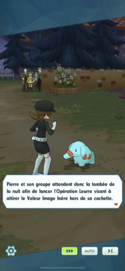- Pierre et son groupe se lance donc à la poursuite de la personne se faisant appeler "le Voleur Image Inère". Sur la route, le groupe croise même un Sbire Team Galaxie qui s'est fait lui aussi dérober son Pokémon et à nouveau un message est visible sur le dos de la victime : "Le marteau de la justice s'abat sur la galaxie sans coeur. Signé : le Voleur Image Inère".