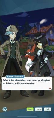 Il semblerait que Sannah ait donc déchiffré ce qui semble être une énigme laissée dans le dos de chaque victime du Voleur Image Inère : en effet, chaque message posté fait référence au nom de la team de la victime. Beladonis en vient finalement à la conclusion que ce voleur s'occuperait de ceux qui ont également volé par le passé. D'ailleurs, la Sbire de la Team Flare vous apprend qu'il est "bien connu dans le milieu". Mais Pierre reste plus dubitatif quant au fait que ce voleur vole sans aucune raison apparente ? Quoiqu'il en soit, nos héros doivent le stopper au plus vite !