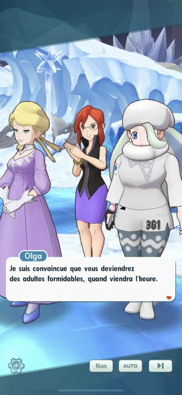 En demandant un peu d'aide à Blanche, Gladys et Roxanne, nos deux héroines finissent pas trouver chaussure à leur pied en allant à la rencontre de Glacia, Olga et Lona ! Et sans plus tarder, les 3 championnes leur proposent donc de commencer à leur enseigner tout leur savoir.Récompenses (1ère fois)