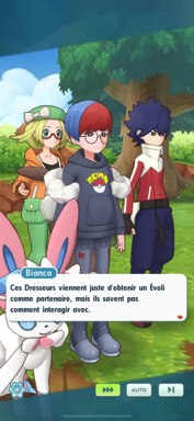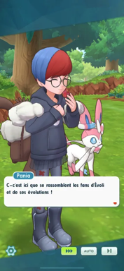 - Tout un tas de Dresseurs d'Évoli et ses évolutions sont réunis dans une clairière pour un rassemblement de fans du Pokémon ! Pania est arrivée à Passio pour l'occasion avec son Nymphali ! Elle compte profiter d'être une inconnue dans cette région pour se réinventer, mais même si elle craque devant toutes les "évolitions" présentes, sa timidité l'empêche de se joindre aux conversations des Dresseurs pour partager sa passion pour la famille de l'adorable Pokémon. Et soudain, quelqu'un vient lui parler !