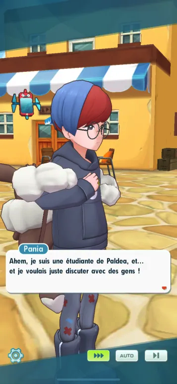 - De retour en ville après avoir livré de nombreux conseils d'élevage, Pania se sent épuisée d'avoir autant parlé, étant peu habituée à discuter aussi longtemps. Mais son entraînement pour apprendre à vaincre sa timidité n'est pas terminée car Matis et Bianca lui réservent une autre "épreuve" ! Elle va devoir aborder Écho et Mélis qui n'ont pas tellement d'attache avec Évoli et sa famille. Mais Matis se veut rassurant, il les connaît bien et sait qu'elle n'a rien à craindre en leur parlant, et ses nouveaux amis seront près d'elle pour l'encourager. Elle engage donc la conversation avec une un classique mais qui ne permet pas toujours d'élaborer une conversation : la météo du moment.