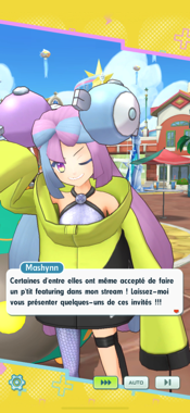 Puis, Alexis et Mashynn se tournent vers vous pour vous apprendre qu'ils veulent que vous fassiez partie intégrante des streams, en commençant par vous mettre à la caméra ! Les tournages vont bientôt pouvoir commencer ! Pendant que les deux vedettes se vantaient de leur collaboration, Ball Masqué s'est avancé derrière eux, et lorsque Alexis est parti, Mashynn le remarque enfin.Récompenses (1ère fois)