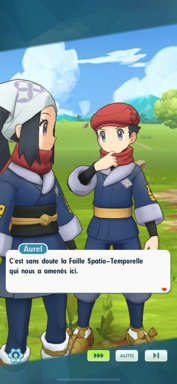 - Finalement, nos héros de Hisui semblent avoir réussi à échapper aux Pokémon. Alors qu'ils se demandent où ils ont bien pu atterrir, ils font la rencontre avec Louka et Aurore. Après avoir fait connaissance, Aurel se souvient de la Faille Spatio-Temporelle, qui a sûrement dû les faire atterrir à Passio. Quoiqu'il en soit, Adamantin et Nacchara les attendent en ville pour les voir.