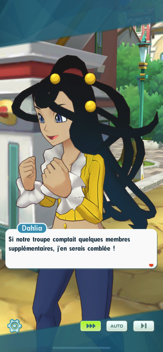 - Dahlia est l'une des Meneuses de Zone de Combat de Sinnoh et la voici fraîchement débarquée à Passio ! Connue pour chanter et danser, son arrivée est l'occasion d'organiser un évènement de dans sur l'île artificielle. Kiméra, Tierno et Kiawe, eux aussi passionnés de danse, l'accueillent et se réjouissent de pouvoir former une équipe de danseurs. Mais Dahlia trouve qu'à 4, ils sont encore trop peu nombreux et elle aimerait que l'équipe se renforce avec quelques membres de plus. Kiawe a justement entendu une rumeur selon laquelle des éclats de voix et des bruits de pas se font entendre la nuit vers la forêt, il pense qu'il pourrait s'agir de danseurs. Tierno propose donc d'aller vérifier cela par eux-même la nuit-même, même si l'idée de faire une mauvaise rencontre lui fait un peu peur.
