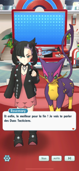 Cet épisode est scripté, c'est-à-dire que vous n'aurez pas de liberté dans le choix de vos Duos, et leurs niveaux seront fixés, même si vos dresseurs impliqués n'en sont pas encore à ce niveau en temps normal :
