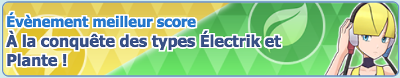![]() À la conquête des types Électrik et Plante !Combats Solo et classement | Du 10 mars 2026 au 22 mars 2026 |
