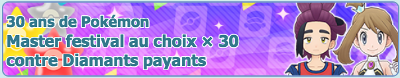 ![]() Journée Pokémon MastersAppel Duo spécial Échanges d'objets Bonus de Connexion Promotion sur les Diamants Combats Solo et Coop | Du 25 février 2026 au 26 février 2026 |
