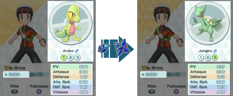 Lorsqu'un Pokémon évolue, non seulement son apparence change, mais surtout, ses statistiques sont renforcées !