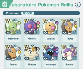 Pour commencer cette étude, elle vous propose de choisir un Oeuf parmi trois contenant les starters de Kanto. Il vous faut gagner 5 combats pour qu'il éclose (les combats perdus ne sont pas comptabilisés) ! Une fois né, le Pokémon peut être renommé et il forme un Duo avec votre personnage principal. Tous les starters ont ensuite pu être obtenus via un Évènement Oeufs (plus d'infos ci-dessous).Duo ★★★
