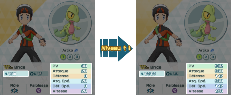 Certains Duos possèdent un Pokémon capable d'évoluer ! Lorsqu'un Pokémon évolue, non seulement son apparence change, mais surtout, ses statistiques sont renforcées !