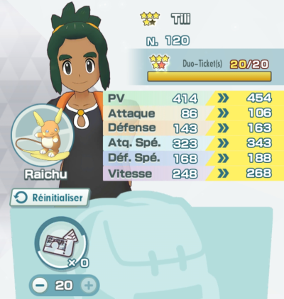 Pour ce faire, rendez-vous dans le menu "Duos" (ou parlez à Euphrosyne) via le Centre Pokémon, puis sélectionnez "Augmenter le potentiel/renforcer les capacités". Choisissez alors le Duo à améliorer et appuyez sur le bouton + sous le Duo-Ticket pour en attribuer le nombre souhaité, et enfin validez avec le bouton "OK".