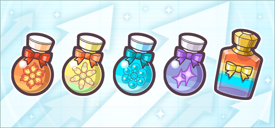 | 4 | 1 Cristal de Passion (50%)2 Cristaux de Passion (25%)1 Super Cristal de Passion (25%) | 1 Cristal de Réconfort (50%)2 Cristaux de Réconfort (25%)1 Super Cristal de Réconfort (25%) | 1 Cristal de Sensibilité (50%)2 Cristaux de Sensibilité (25%)1 Super Cristal de Sensibilité (25%) | 1 Butin Rare 1★ (0.60%)1 Butin Rare 2★ (0.60%) |