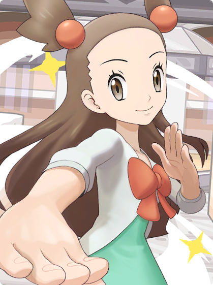 En gagnant des points d'amitié avec ce personnage via les Interactions au Salon des Dresseurs, vous pouvez obtenir des photos. Un cadre spécial à l'effigie de son Pokémon est également déblocable si vous possédez le Duo correspondant au niveau de capacités 5.Photo de scène