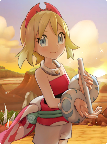 En gagnant des points d'amitié avec ce personnage via les Interactions au Salon des Dresseurs, vous pouvez obtenir des photos. Un cadre spécial à l'effigie de son Pokémon est également déblocable si vous possédez le Duo correspondant au niveau de capacités 5.Photo de scène