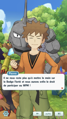- Pierre vous explique qu'il ne vous reste plus qu'à obtenir le Badge Fierté pour avoir droit de participer au WPM ! Il vous explique que la dresseuse qui le détient est une petite fille détenant le titre de Doyenne d'Alola.