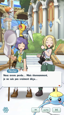 - Battus, Hector et Violette vous félicitent et ne semblent pas réellement déçus. Violette vous prend en photo avec Hector, puis elle vous demande si elle peut rejoindre votre équipe, ce que vous vous acceptez évidemment sans attendre.