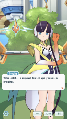 - Inezia est éblouie par votre victoire écrasante ! Pendant ce temps, grâce aux efforts combinés de tous les autres duos, la Team Break a une nouvelle fois échoué, même s'ils ne semblent toujours pas prêts à abandonner leurs objectifs. Alors que tout le monde célèbre la solidarité dont ont fait preuve les Duos, qu'ils soient encore en lice pour le WPM ou non, Kyrill s'éloigne, songeur. Marion et Clément, du Conseil 4 du Plateau Indigo, ont observé la scène depuis un promontoir et sont impressionnés par les évènements qui viennent de se dérouler. Clément se demande s'ils auront à vous affronter dans un prochain combat du WPM, mais il semble plutôt serein car son équipe comprend un personnage mystère !