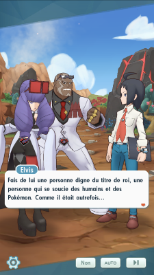 Ils commencent alors lui raconter tout ce qu'ils savent sur le prince... et vous apprenez que son changement d'attitude a fait suite à la mort de sa mère, et son père l'a alors contraint à séjourner dans un foyer. L'éducation très stricte qu'il y a reçue et la séparation avec Elvis et Cléa l'ont profondément changé, si bien qu'il est devenu très égoïste et n'avait plus confiance en grand monde. Elvis vous confie que c'était son son idée de créer le WPM à Passio, pour qu'il puisse redevenir comme avant et qu'il se lie d'amitié avec des Pokémon et des Dresseurs de renom dans le cadre du tournoi, mais en vain... Tcheren promet alors de tout faire pour qu'Alexis redevienne un prince respecté et respectable ! Cléa reste plus sur la défensive mais encourage aussi le champion de Pavonnay. Tcheren ne comprend cependant pas le lien entre toutes ces histoires et Hoopa. Elvis l'informe que ce Pokémon fabuleux est arrivé avec Alexis sur l'île, mais qu'ils n'en savent pas plus... Le champion-enseignant décide de ne pas s'en préoccuper pour le moment et leur demande un service.