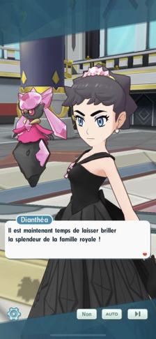 Le public acclame ce qui se passe sous ses yeux, semblant prendre la tournure des évènements pour une scène prévue au programme. Mais Dianthéa ne se retrouvera finalement pas seule face à la Team Flare, puisqu'une jeune fille nommée Millie surgit et se présente comme étant la nouvelle cheffe de l'Agence Beladonis.Récompenses (1ère fois)