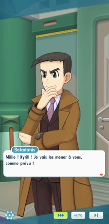 - Une personne déguisée en sbire de la Team Flare a réussi à s'infiltrer dans leur repaire et remarque deux membres qui semblent étonnamment mal repérés dans leurs propres locaux. Feraient-ils partie des traîtres ? Soudain, leur Porygon détecte la présence de l'intrus, qui n'est autre que Beladonis ! Aussitôt les sbires louches s'enfuient et le membre des Forces de Police Internationales appelle Kyrill et Millie pour les prévenir qu'il va les rabattre vers eux.