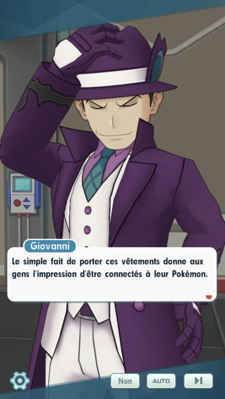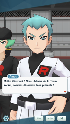 - Durant le combat acharné qui commence à durer, Mewtwo méga-évolue. Amos prévient son chef que les préparatifs sont sur le point d'être terminés. C'est alors que vous arrivez sur les lieux, accompagné de Kyrill et Beladonis ! Giovanni reçoit alors un appel de l'un de ses sbires pour le prévenir qu'un Maître et un champion d'arène l'ont vaincu, lui et sa troupe, et qu'ils se rendent maintenant vers la position du leader. Souhaitant lui envoyer des renforts, il se fait couper le sifflet par Aldo qui n'en fait qu'une bouchée ! Ce dernier s'empare du Porygophone et s'adresse directement au chef de la Team Rocket pour le prévenir que Chuck et lui-même sont à ses trousses.