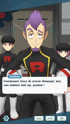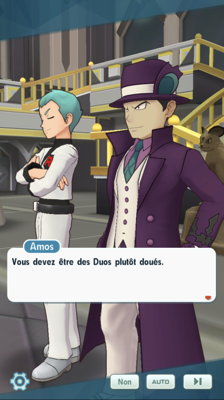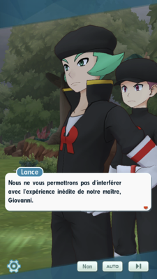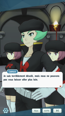- La Team Rocket s'active ! À la Villa d'Alexis, Hector et Blanche ont monté un stratagème pour les attirer à l'intérieur et éviter de causer du tort et entraîner des duos de l'extérieur. Mais alors que Luth décide de presser le petit groupe, Lance et Lambda décident de leur barrer la route afin de laisser du temps à Giovanni pour qu'il mette son plan à exécution. Les deux champions de Johto souhaitent s'en occuper pour faire gagner du temps au groupe, mais voyant la quantité astronomique de sbires présents, Christy préfère ne pas les laisser seuls aux prises avec eux... Fort heureusement, Peter et sa cousine débarquent pour vous prêter main-forte !