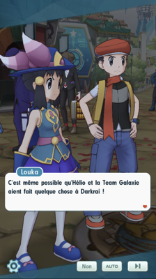 Il vous informe qu'il a pu déterminer l'emplacement exact du chef de la Team Galaxie : d'après ses infos, il devrait se trouver au fond d'une grotte. Le groupe s'y rend aussitôt, accompagné par Chrys car Cynthia espère qu'il pourra le raisonner, comme autrefois. Tout d'un coup, Darkrai apparaît devant eux et le petit groupe commence à somnoler. Louka propose d'y remédier en utilisant le pouvoir de Cresselia, mais sa Dresseuse suggère justement qu'ils se laissent endormir pour aller retrouver Hélio en plein rêve !